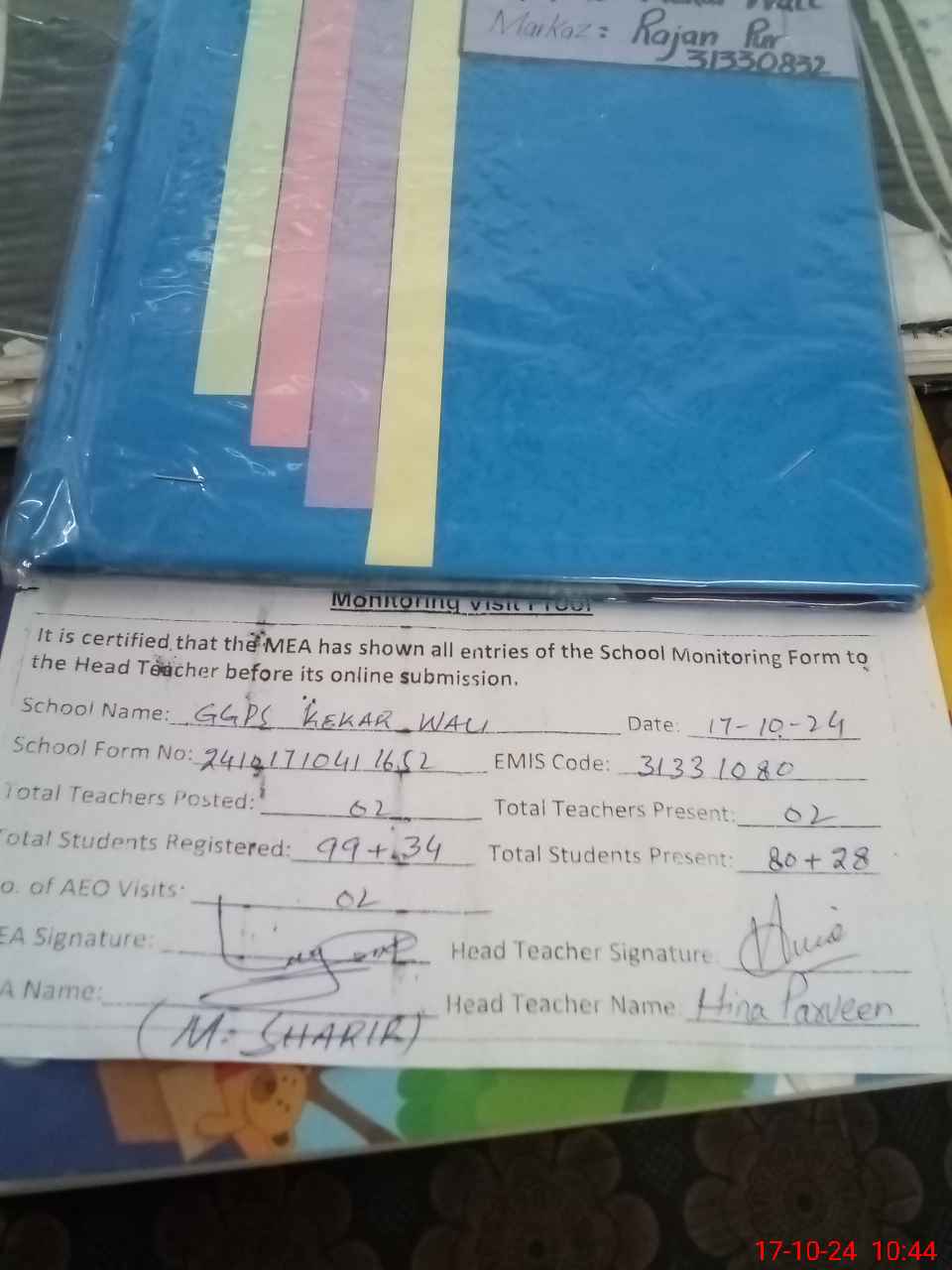 | EMIS Code: 31330832 | Name of School: GGPS KEKAR WALI | |||