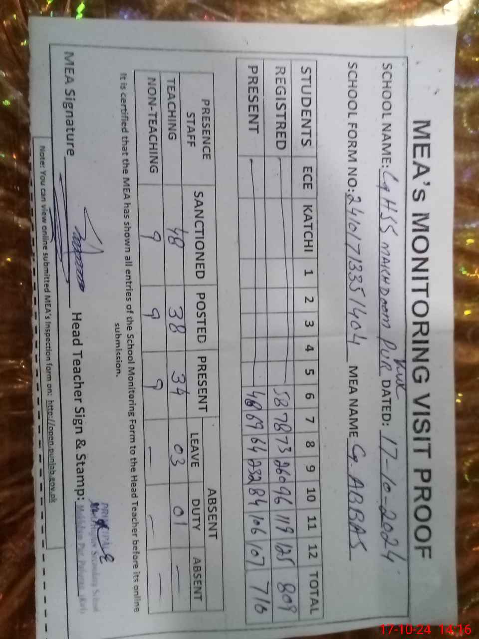 | EMIS Code: 36420001 | Name of School: GHSS MAKHDOOM PUR, KHANEWAL | |||