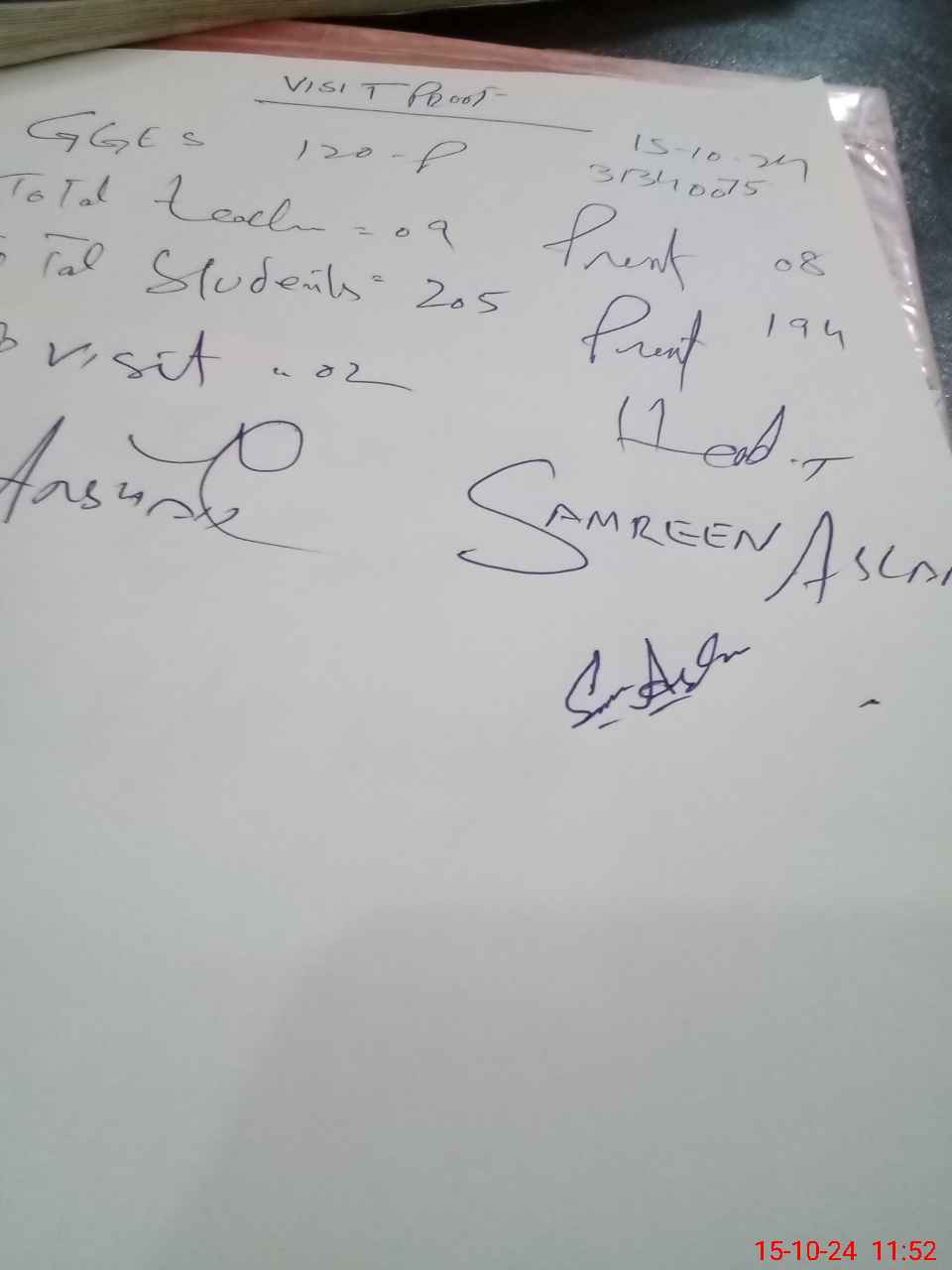 | Attendance Register | Head Teacher | MEA with School | Visit Proof |