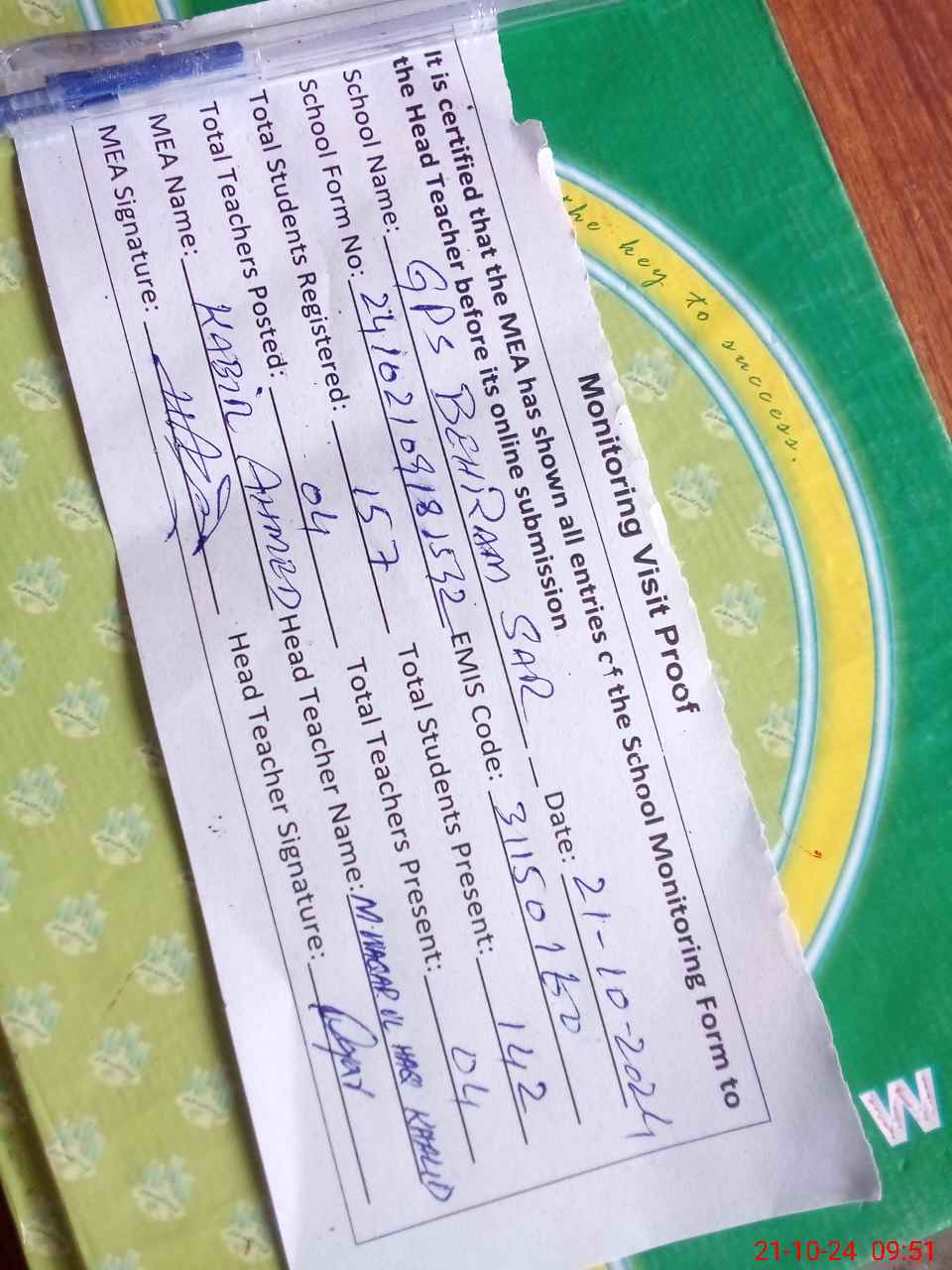 | EMIS Code: 31150160 | Name of School: GPS BEHRAAM SAR | |||