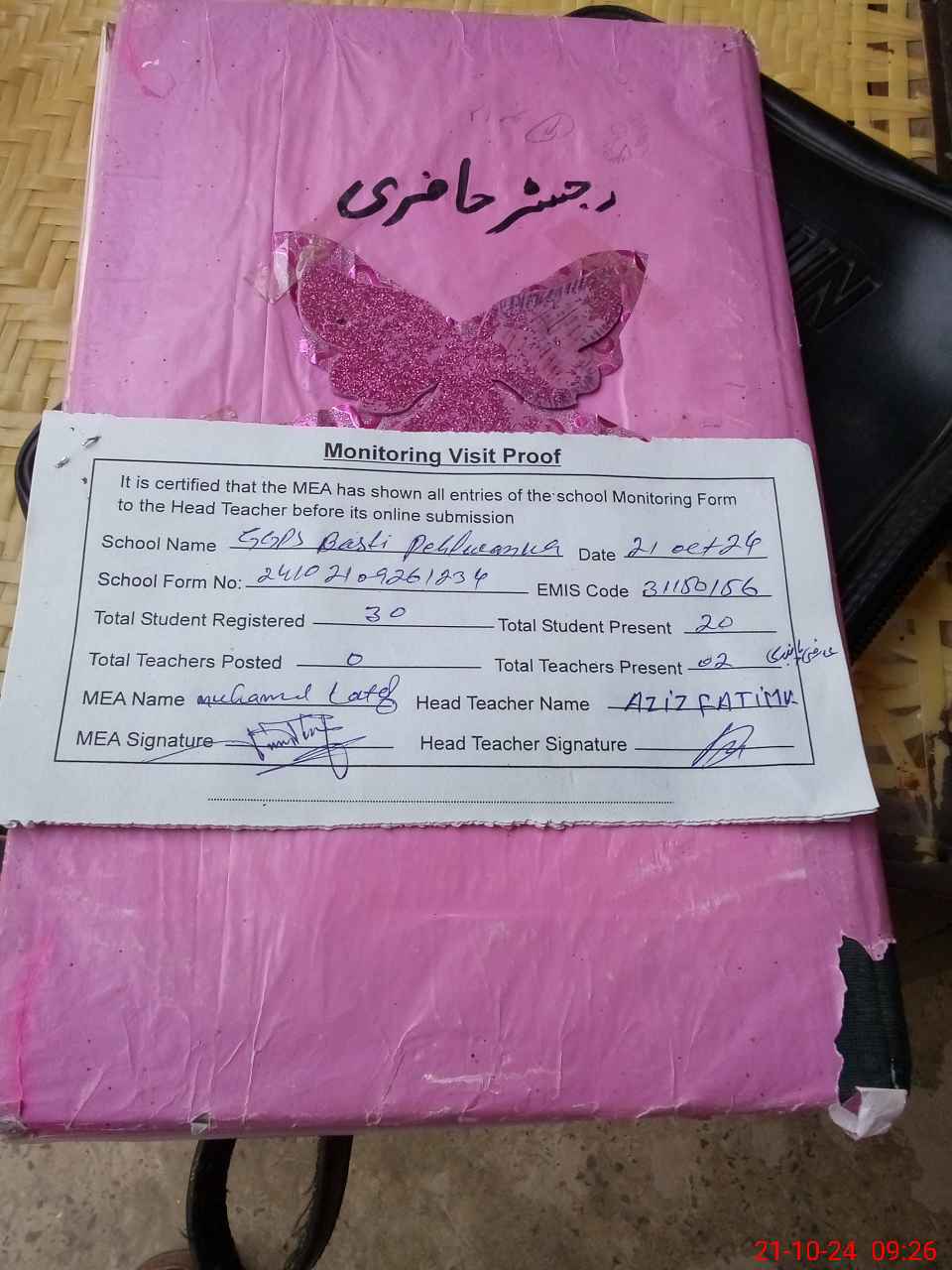 | Attendance Register | Head Teacher | MEA with School | Visit Proof |