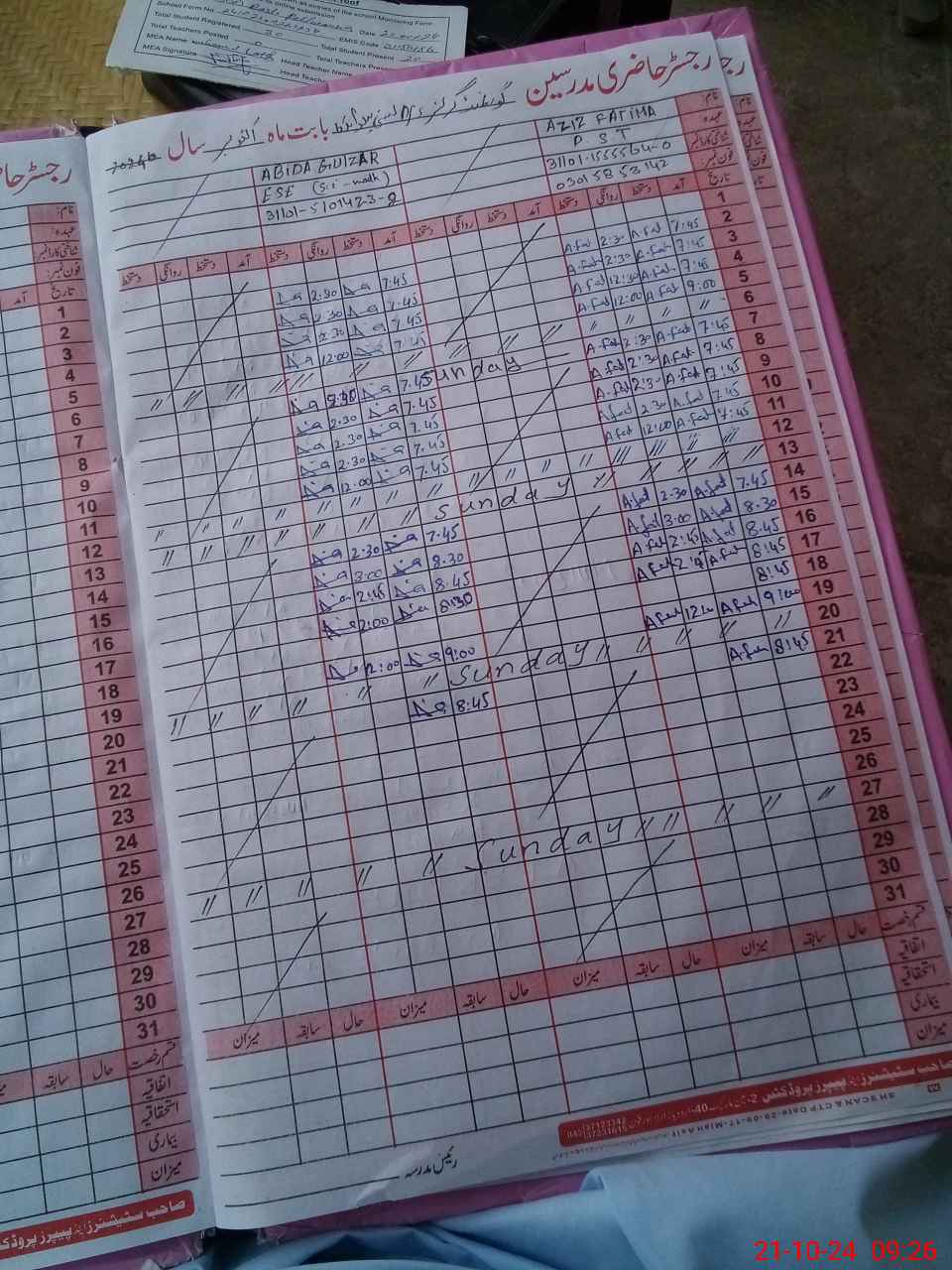 | CNIC | Full Name | Designation | R/C | Absence During Last Calender Month |