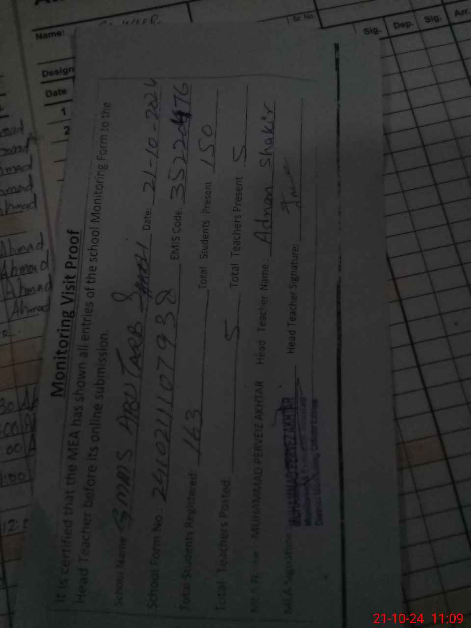 | Certified that this School was Inspected by the Undersigned MEA/DMO Today and the Information Stated Above is as Per Record. | |||||