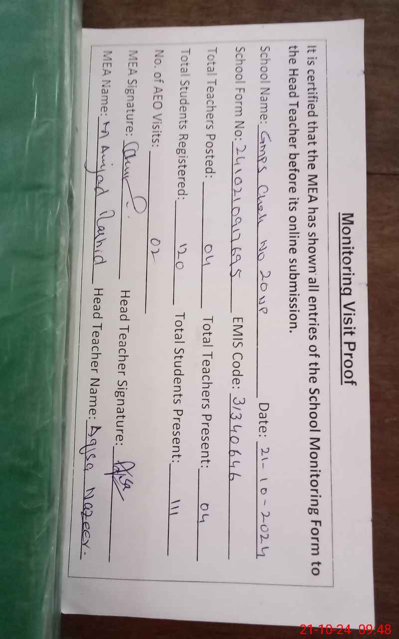 | EMIS Code: 31340646 | Name of School: GMPS CHAK NO.20/NP | |||