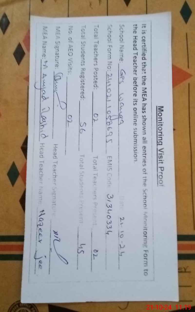 | EMIS Code: 31340334 | Name of School: GPS WAGA | |||