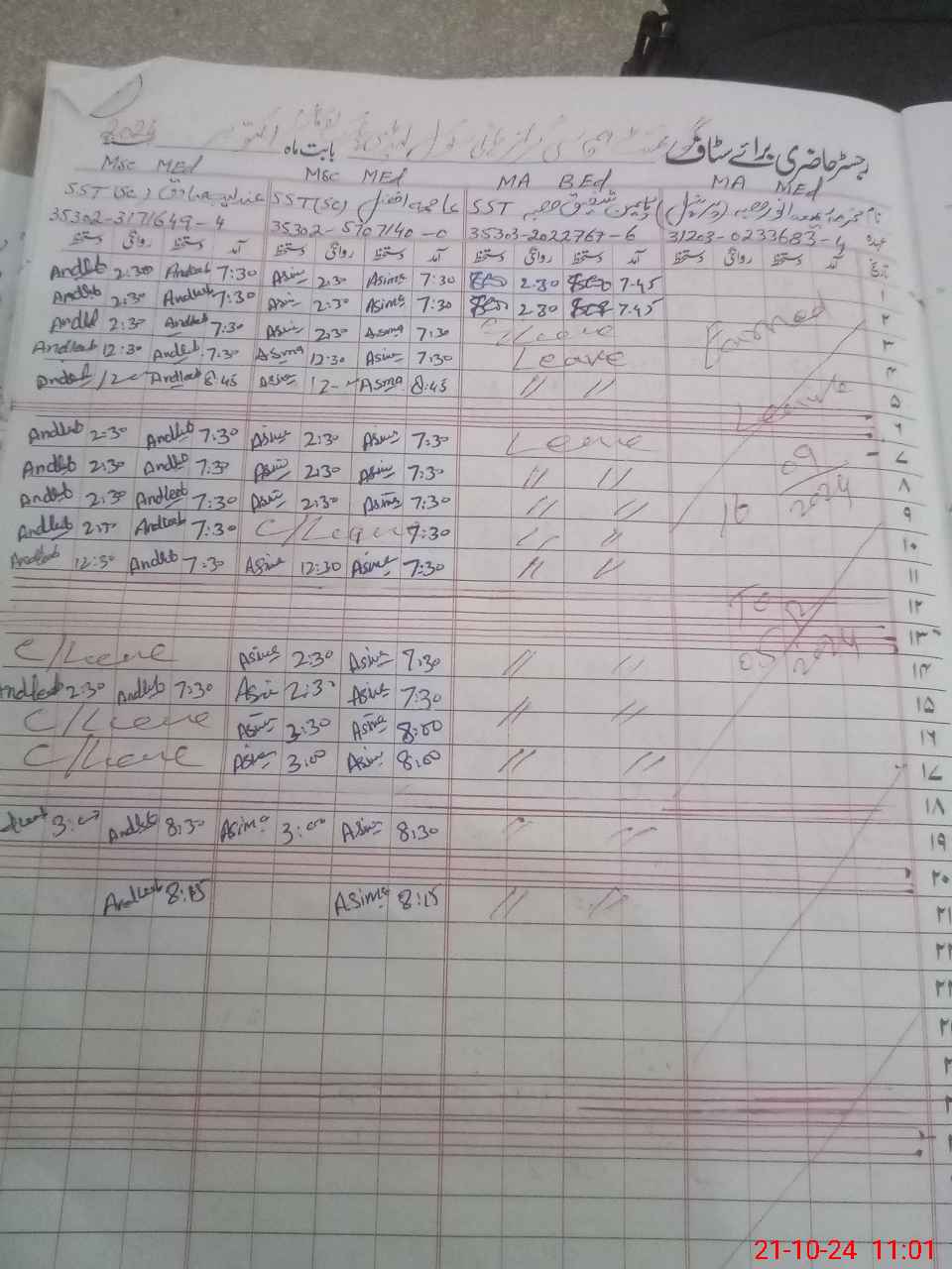 | 35**** | Sa**** Is**** | 1 | 1 | 0 | 0 | 0 | 0 | 0 | 0 | 0 | 0 | 0 | Exam Duty |