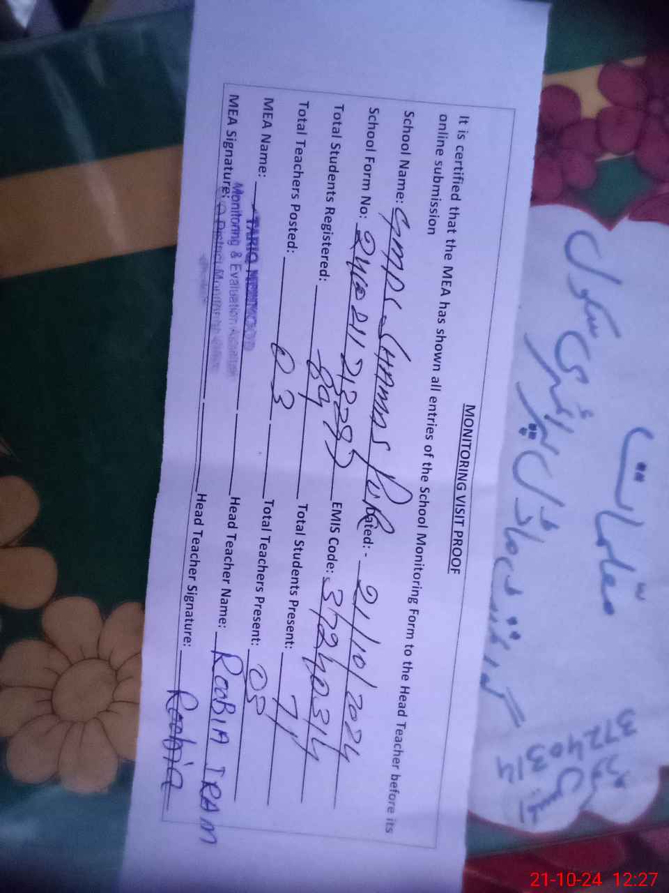 | EMIS Code: 37240314 | Name of School: GMPS SHAMAS PUR | |||