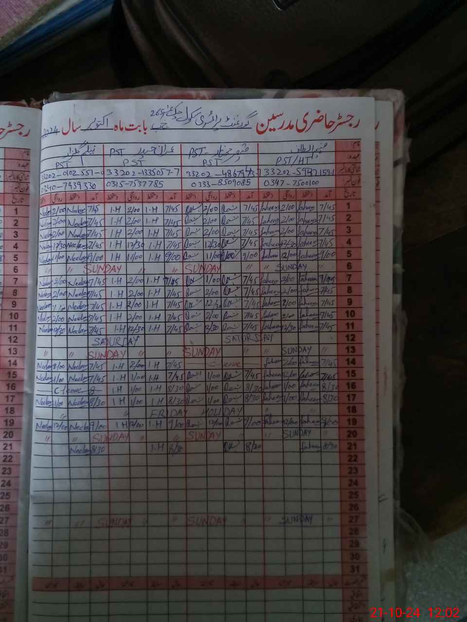 | Name: IJ**** HU**** Designation: (School Headmaster's/Headmistress's) PSf Phone/Cell Number: 03**** |