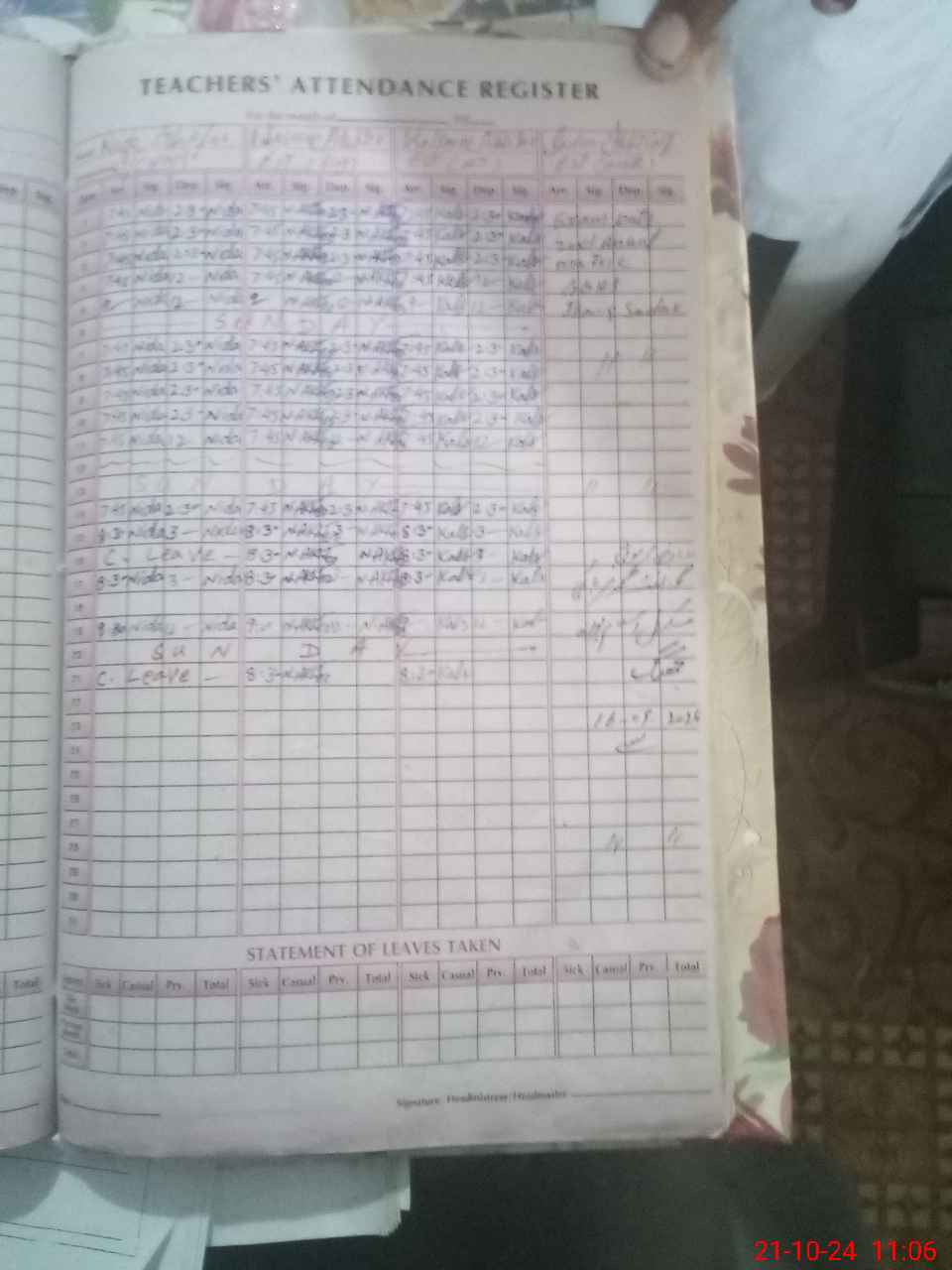| 33**** | Sa**** Is**** | Regular | 0 | 0 | 30 | 0 | 0 | 0 | 0 | 0 | 0 | Absent (Un-Authorized) | |