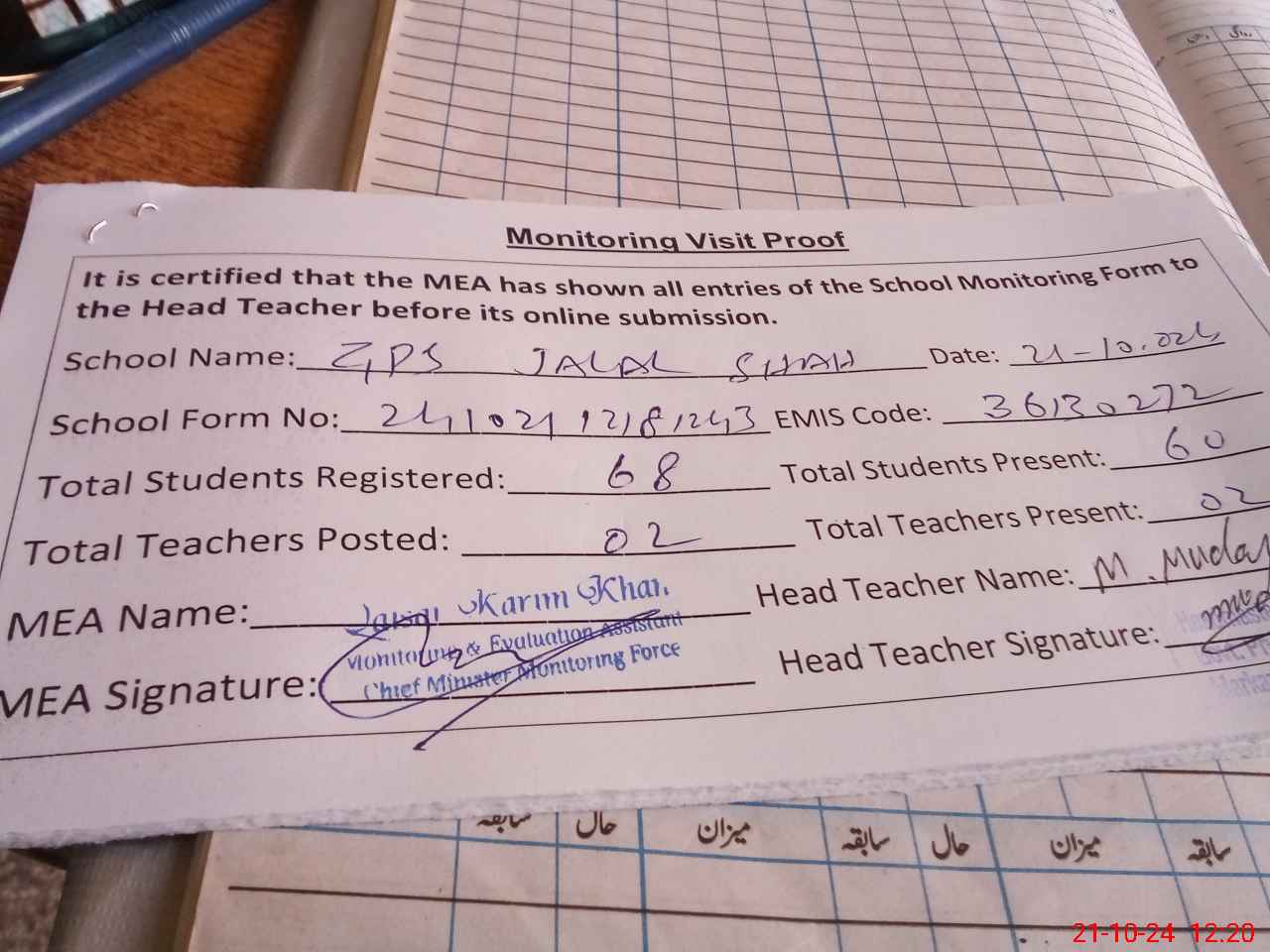 | EMIS Code: 36130272 | Name of School: GPS JALAL SHAH | |||