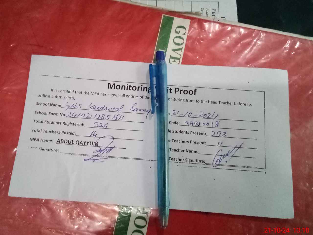 | EMIS Code: 39310018 | Name of School: GHS KANDUWAL SARAY | |||