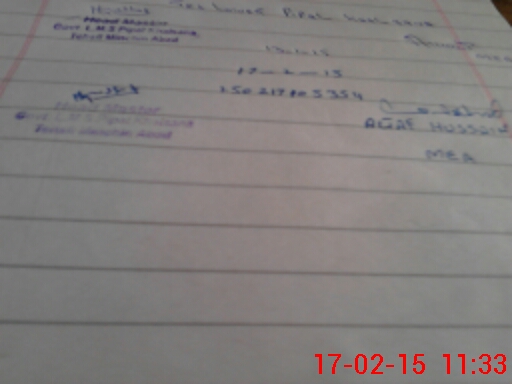 | Monitoring Date: 17-02-2015 | Start Time: 17-02-2015 10:43 AM | End Time: 17-02-2015 11:33 AM | Name of MEA: Al**** Hu**** BN**** | |