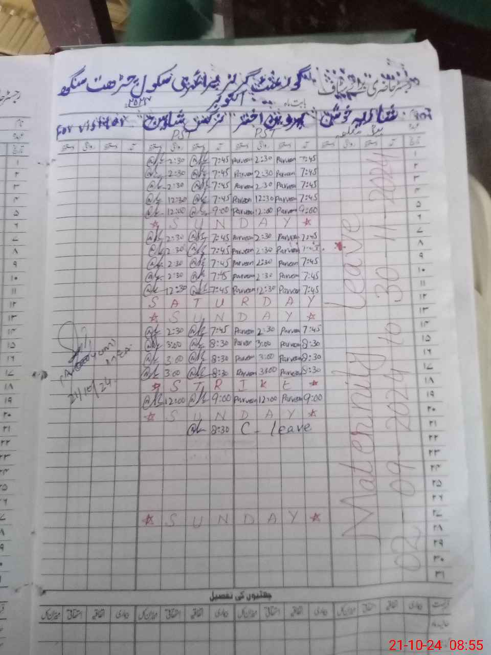 | 35**** | Sh**** Kh**** | PST | Regular | 30 | 0 | 0 | 30 | 0 | 0 | 0 | 0 | 0 | Maternity |