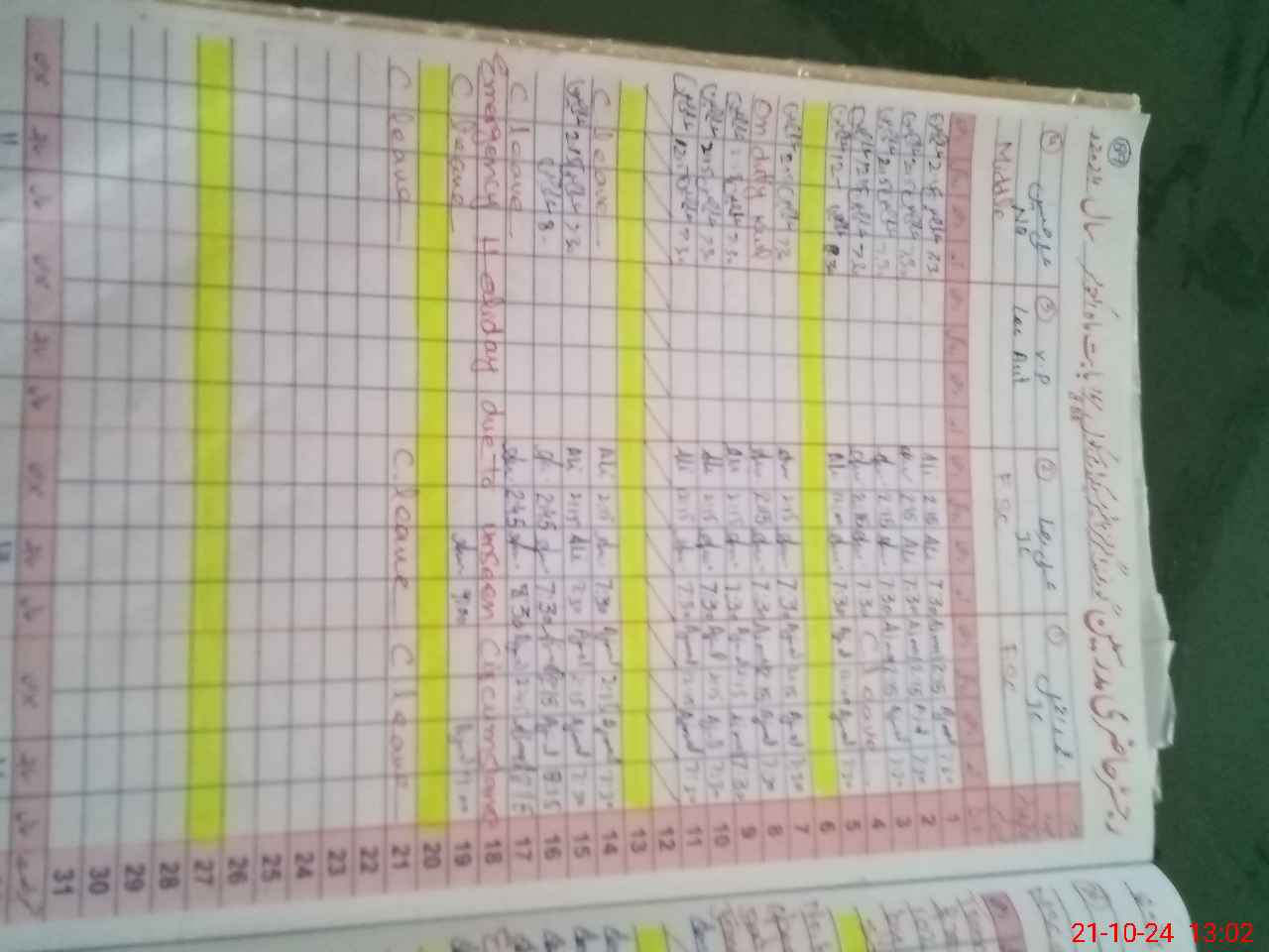 | Leave | Duty | Absent | Maternity | Medical | Ex- Pak |