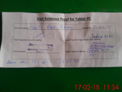 | Attendance Register | Head Teacher | MEA with School | Visit Proof |