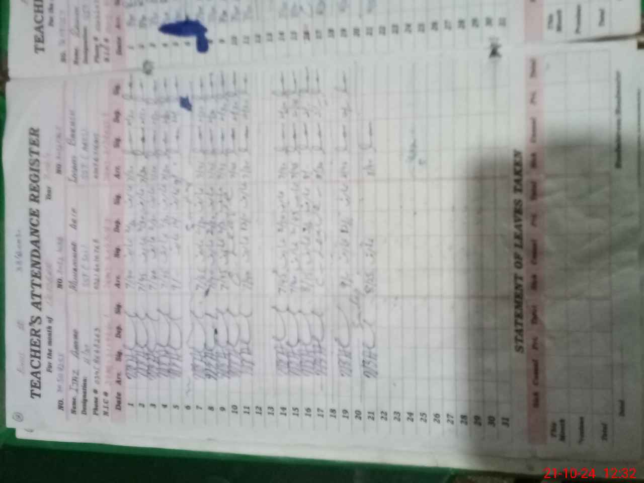 | CNIC | Full Name | Designation | R/C | Absence During Last Calender Month |