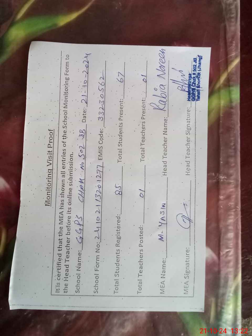 | EMIS Code: 33230562 | Name of School: GGPS CHAK NO 502 JB MALKA | |||