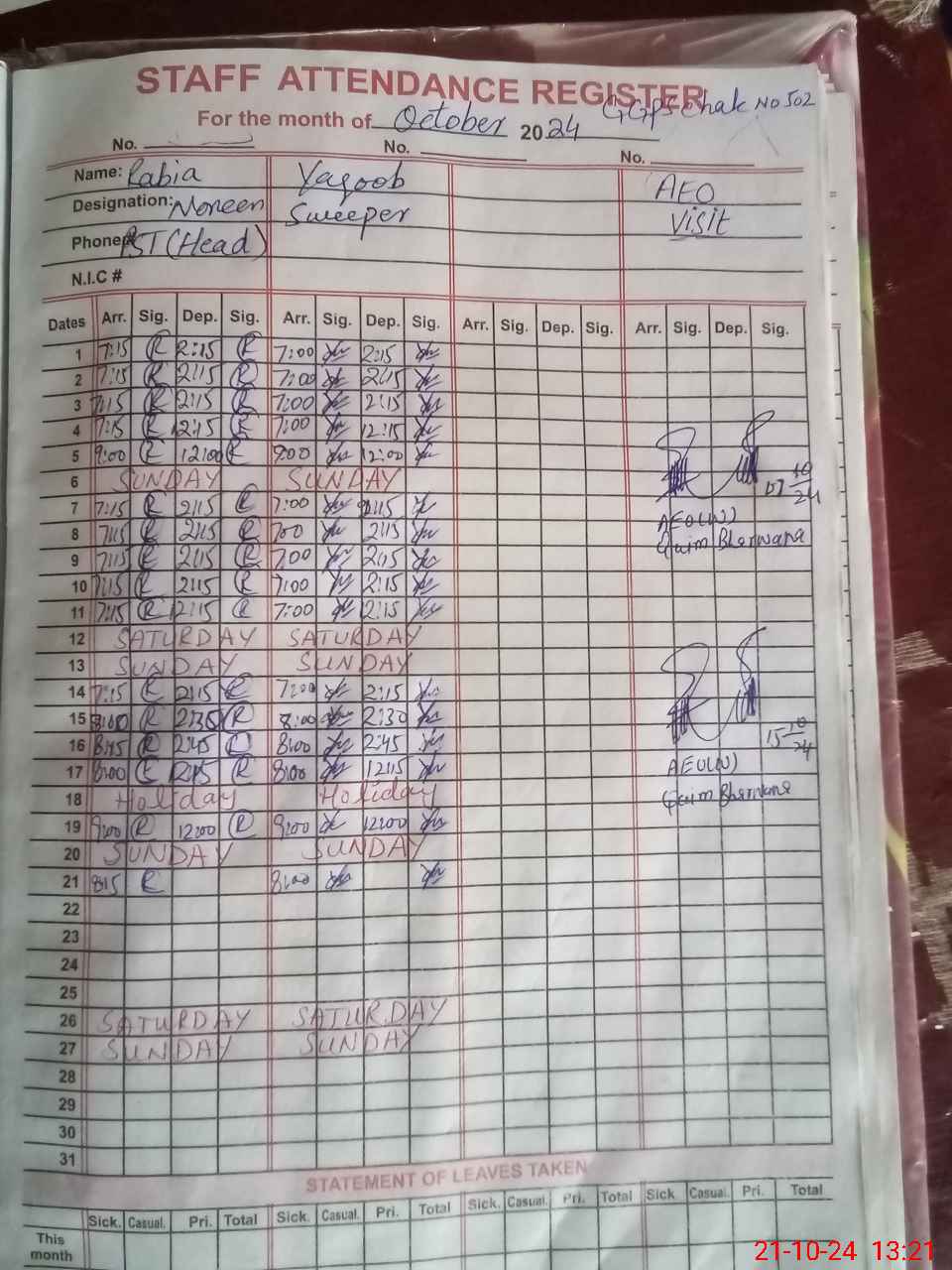 | Name: RA**** NO**** Designation: (School Headmaster's/Headmistress's) PST Phone/Cell Number: 03**** |