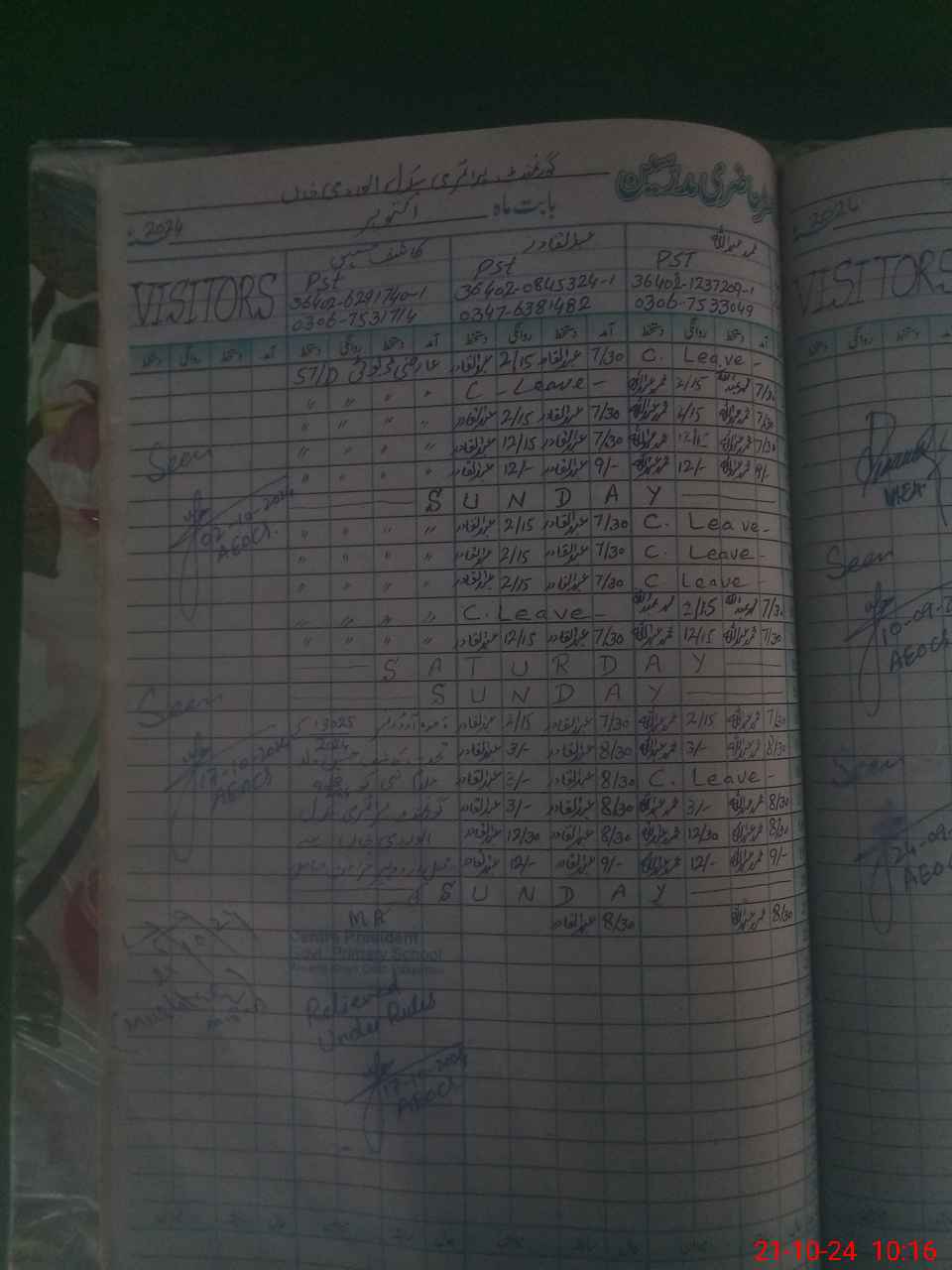 | Leave | Duty | Absent | Maternity | Medical | Ex- Pak |