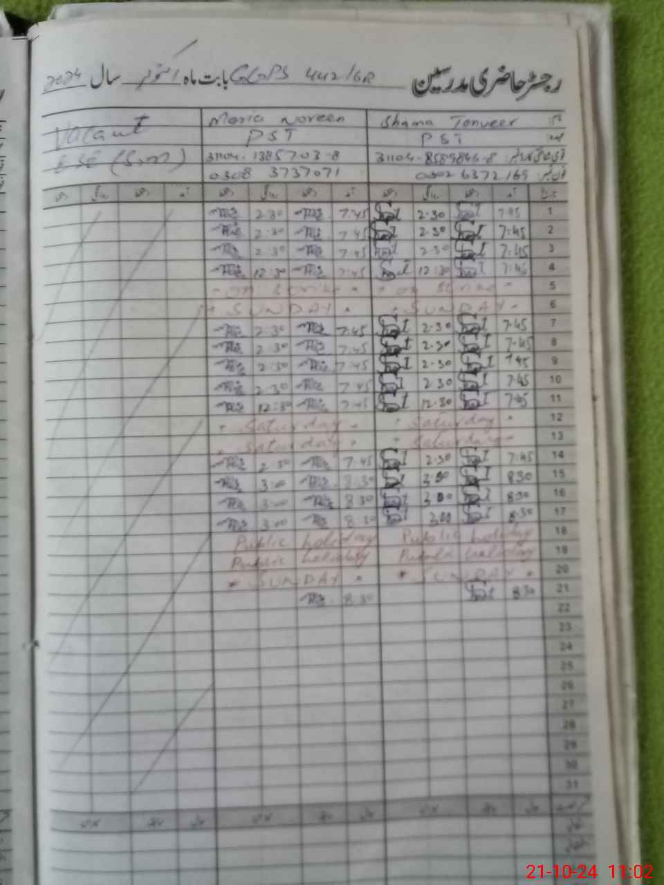 | CNIC | Full Name | Designation | R/C | Absence During Last Calender Month |