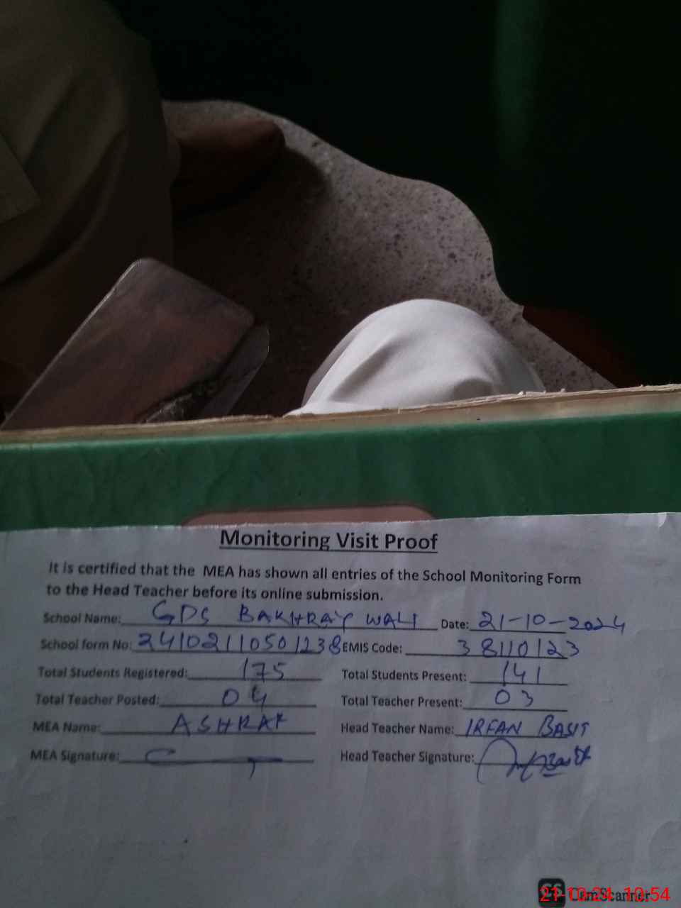 | EMIS Code: 38110123 | Name of School: GPS BAKHRAY WALI | |||
