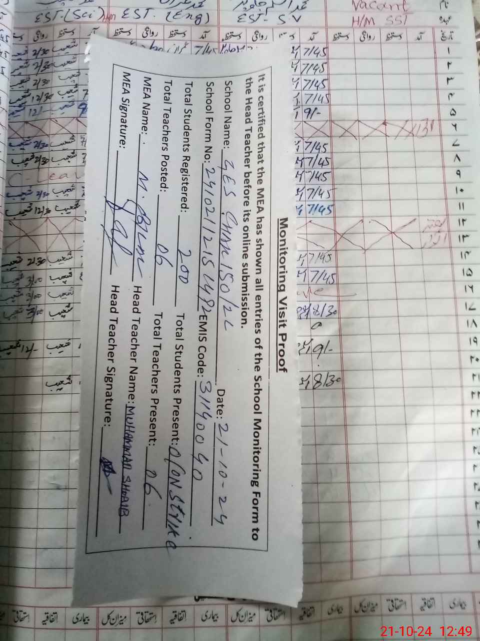 | Certified that this School was Inspected by the Undersigned MEA/DMO Today and the Information Stated Above is as Per Record. | |||||