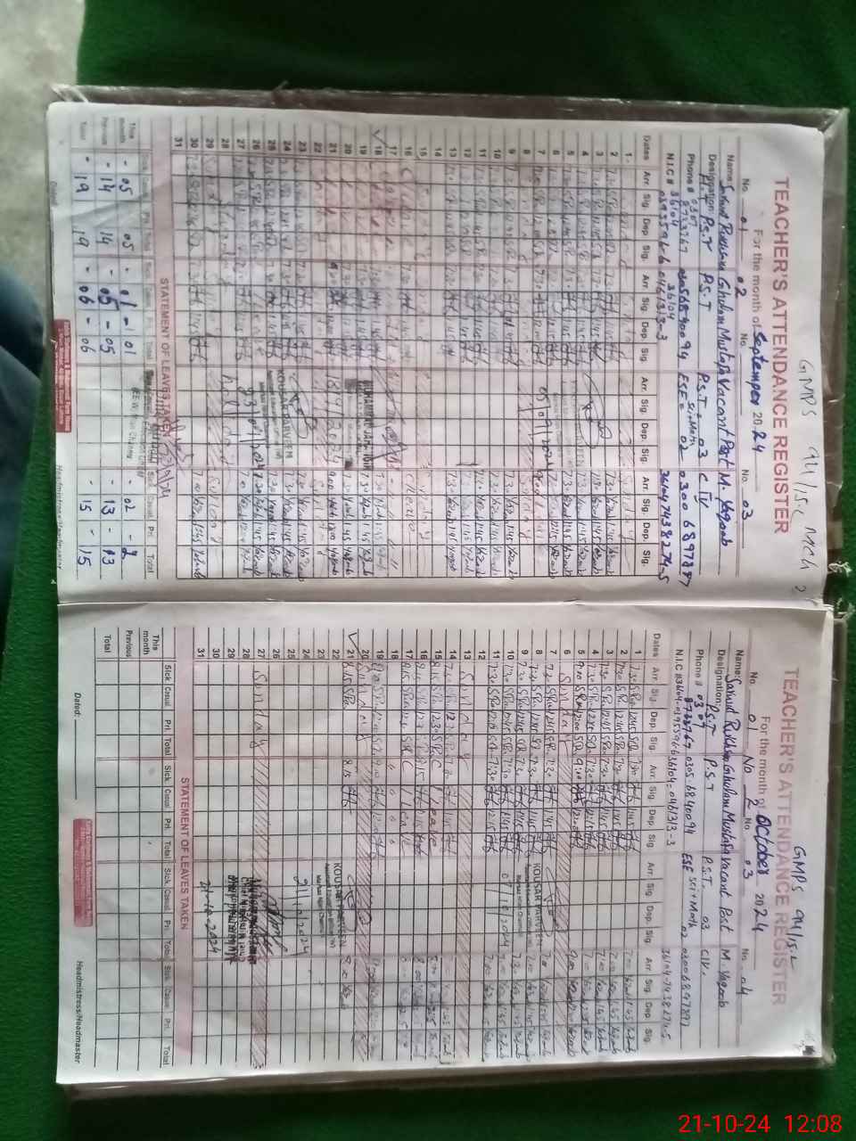 | Name: SA**** RU**** Designation: (School Headmaster's/Headmistress's) PST Phone/Cell Number: 03**** |