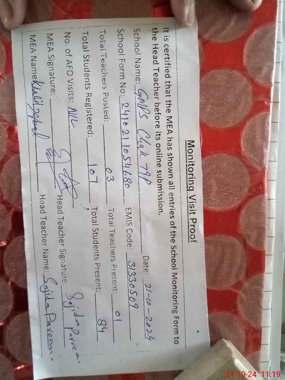 | EMIS Code: 31330509 | Name of School: GMPS CHAK 97/P | |||
