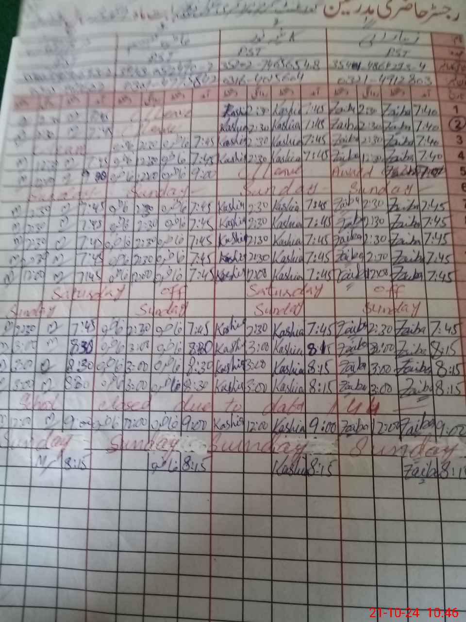 | CNIC | Full Name | Designation | R/C | Absence During Last Calender Month |
