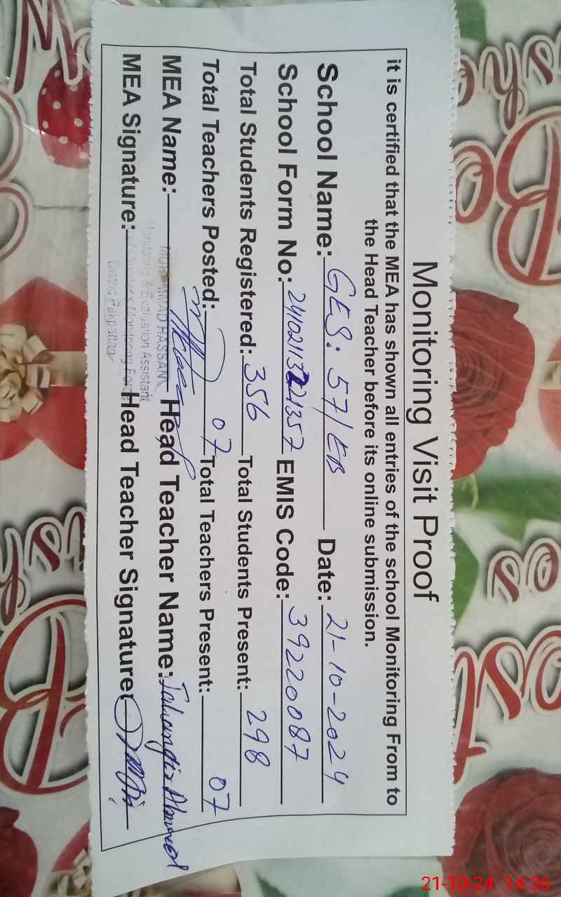 | EMIS Code: 39220087 | Name of School: GES 57 EB | |||