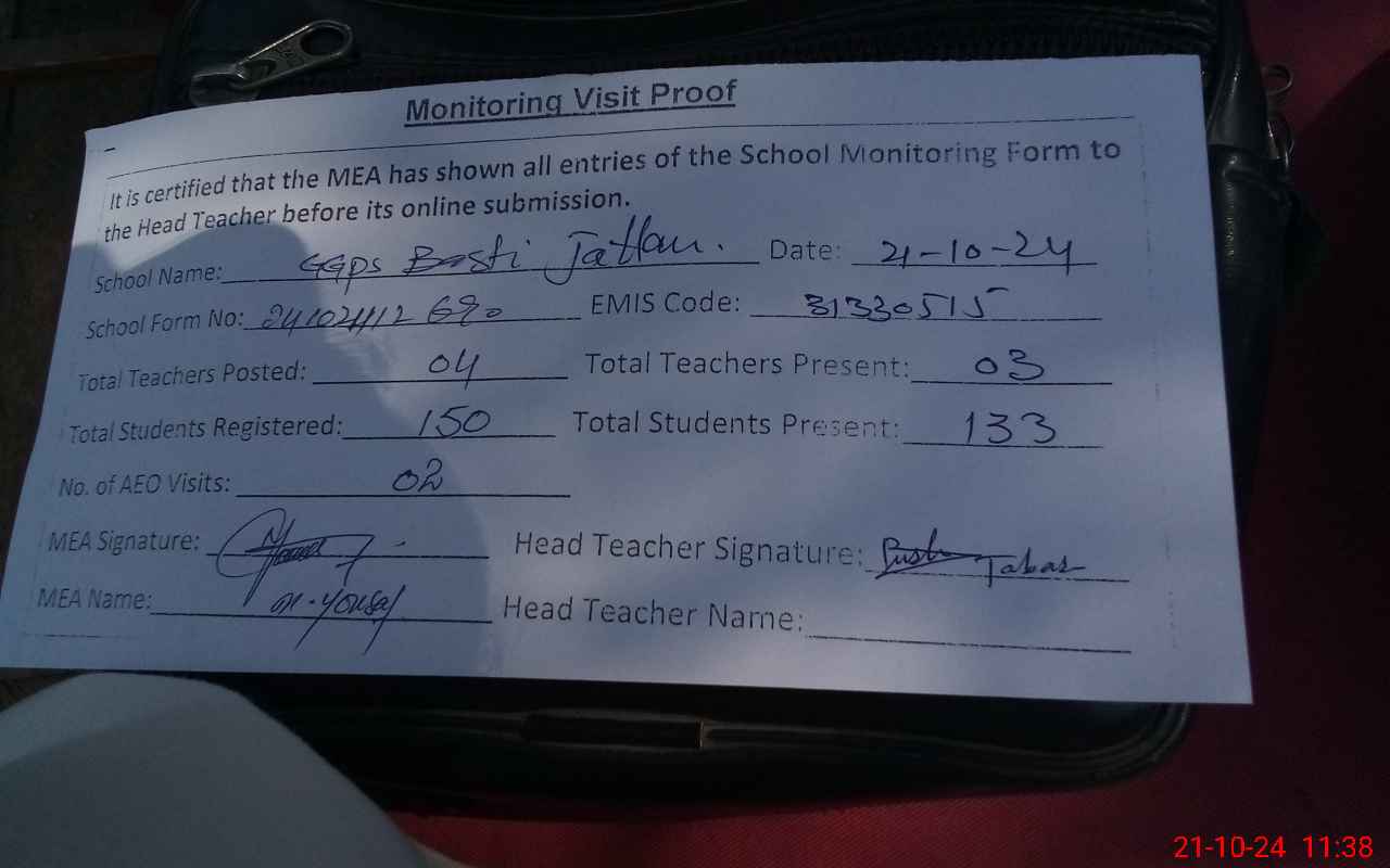 | Certified that this School was Inspected by the Undersigned MEA/DMO Today and the Information Stated Above is as Per Record. | |||||