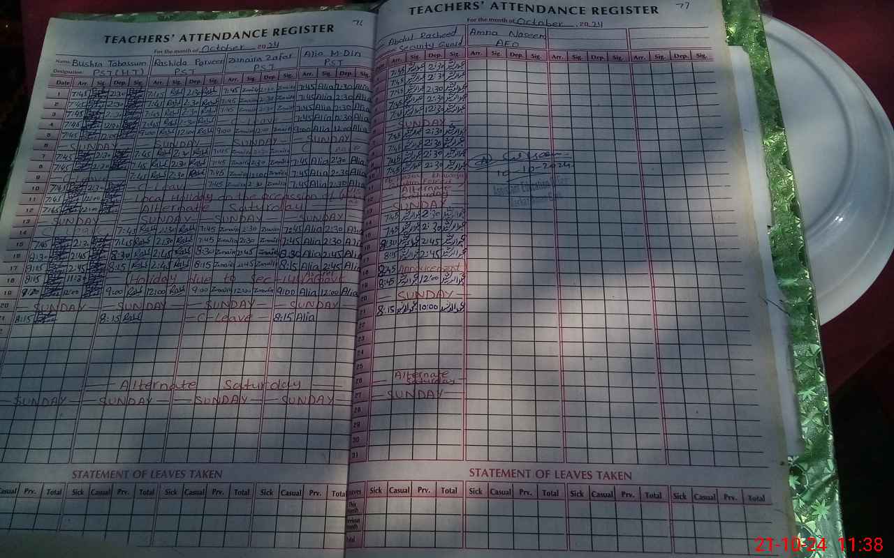 | CNIC | Full Name | Designation | R/C | Absence During Last Calender Month |