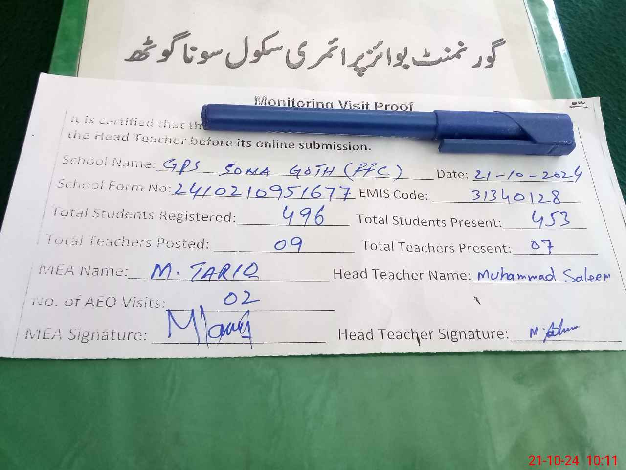 | EMIS Code: 31340128 | Name of School: GPS SONA GOTH FFC | |||