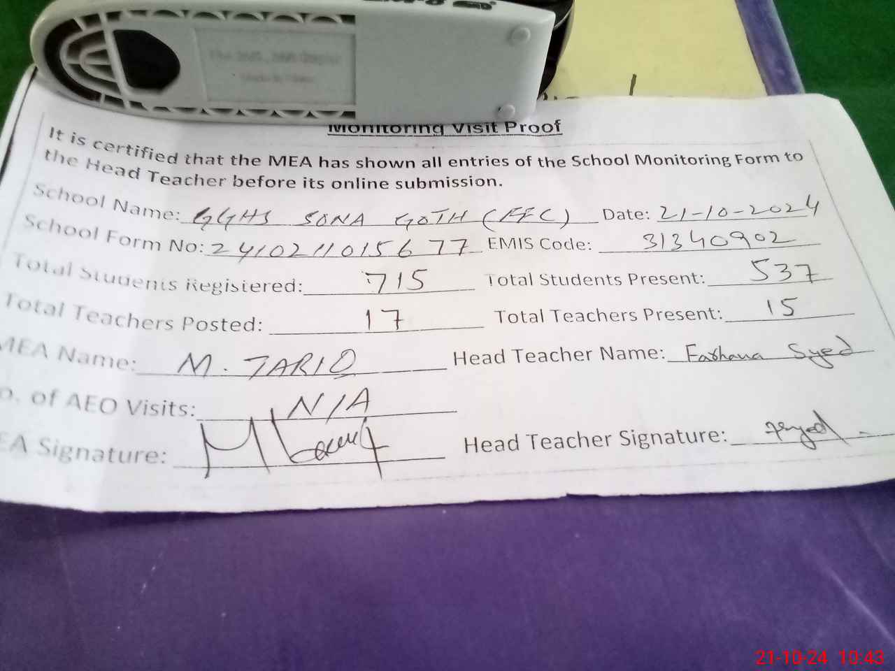 | EMIS Code: 31340902 | Name of School: GGHS SONA GOTH | |||