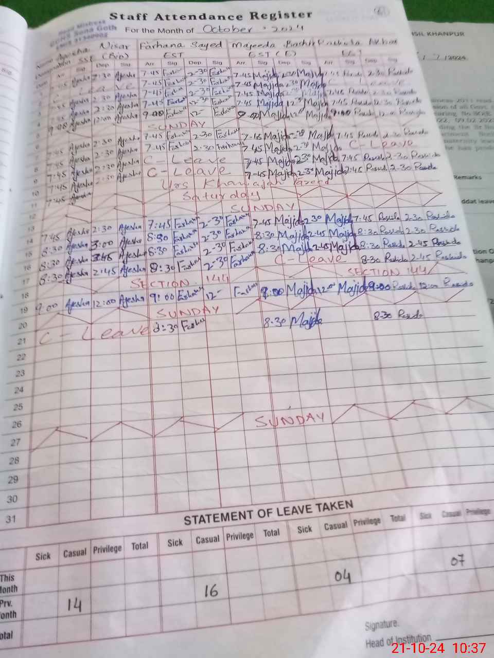 | 31**** | Bu**** Kh**** | PST | Regular | 30 | 0 | 0 | 0 | 0 | 0 | 0 | 0 | 0 | Earned |