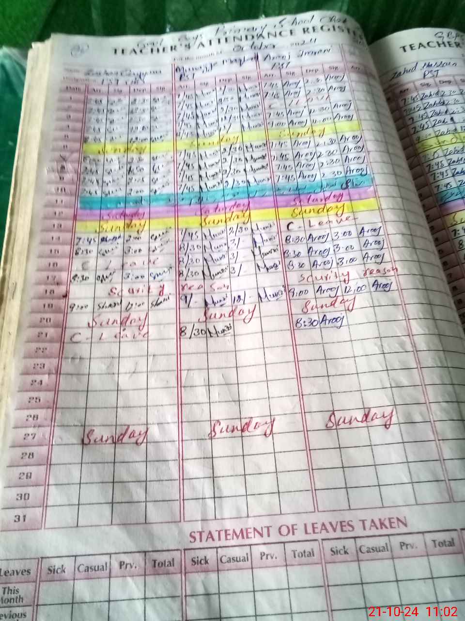 | Leave | Duty | Absent | Maternity | Medical | Ex- Pak |