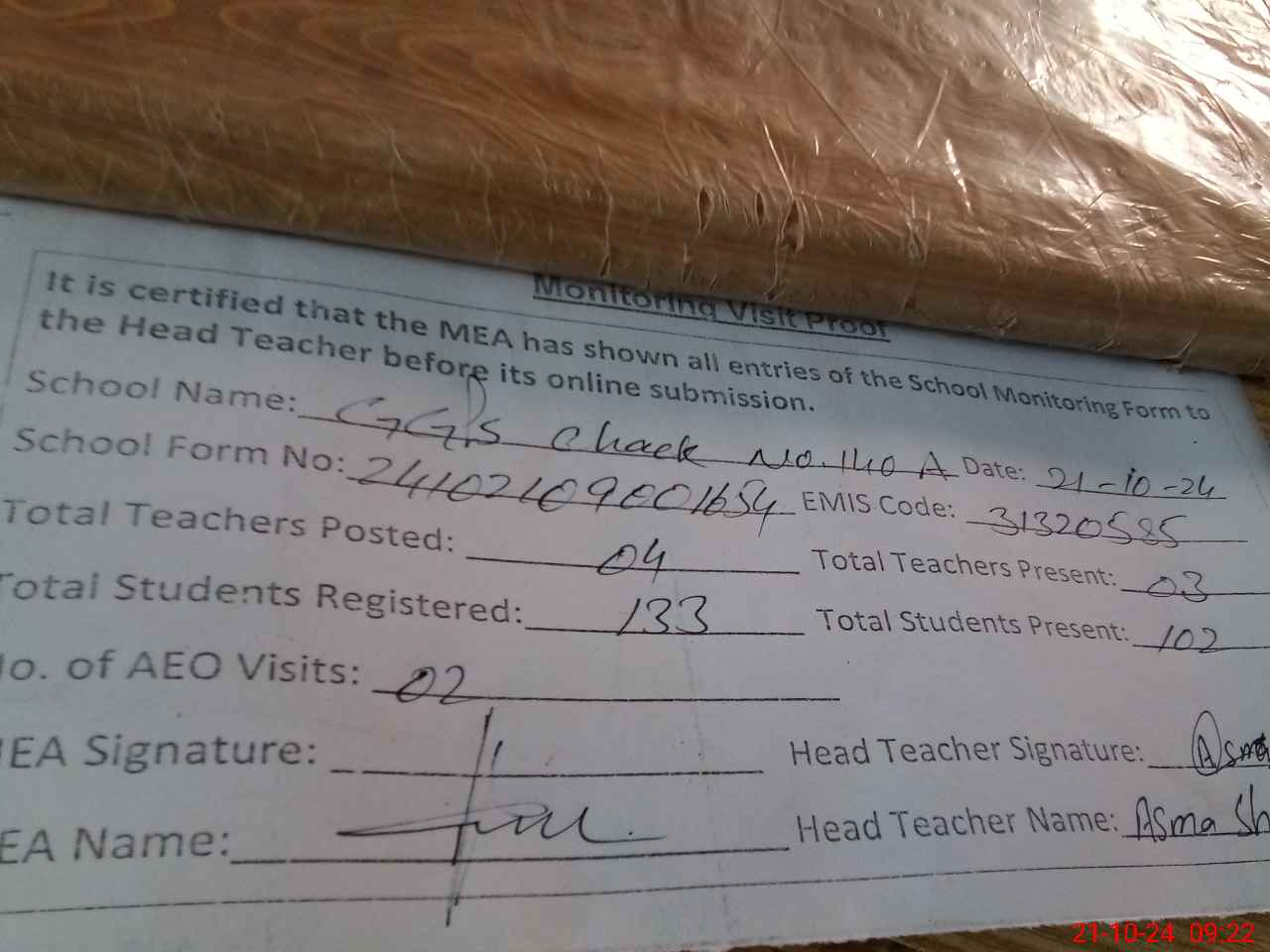 | EMIS Code: 31320585 | Name of School: GGPS CHAK NO.140/A | |||