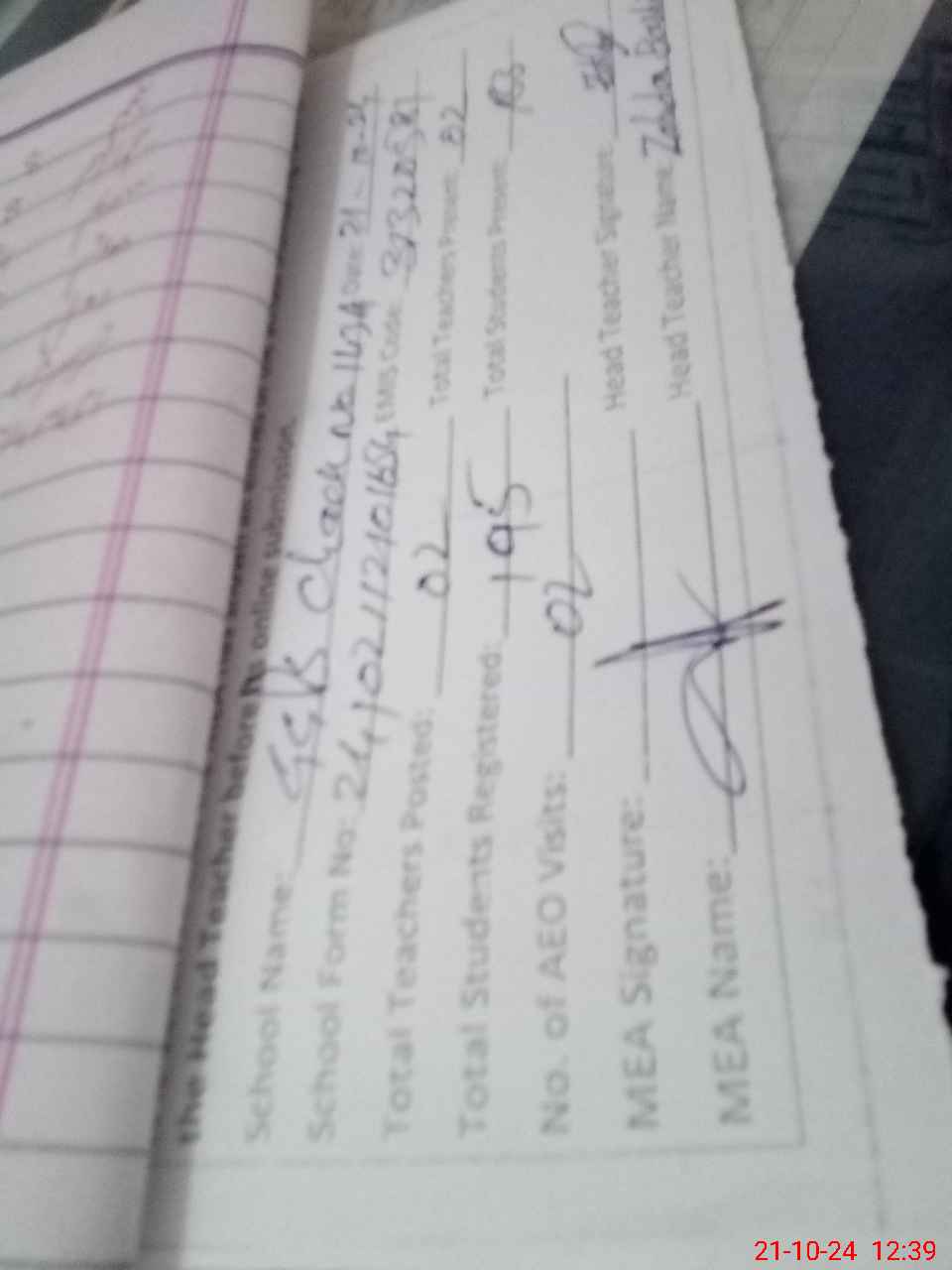 | Name: Za**** Ba**** Designation: (School Headmaster's/Headmistress's) PST Phone/Cell Number: 03**** |