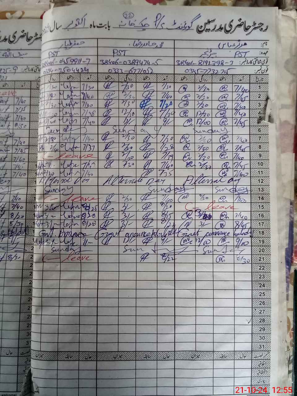 | Name: MU**** AB**** Designation: (School Headmaster's/Headmistress's) PST Phone/Cell Number: 03**** |