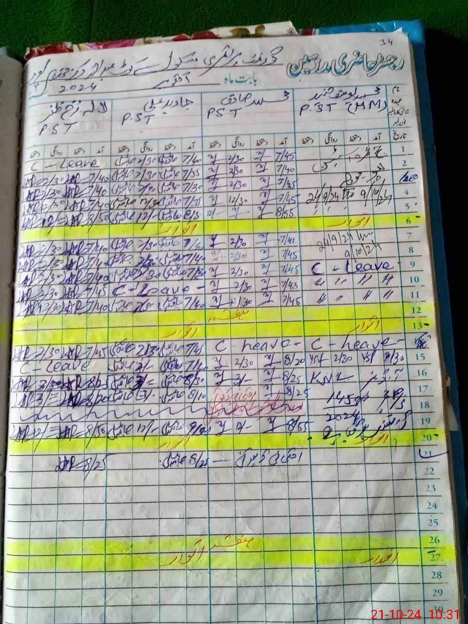 | 36**** | Mu**** Sa**** | PST | Regular | 0 | 0 | 0 | 0 | 0 | 0 | 0 | 0 | 0 | Exam Duty |