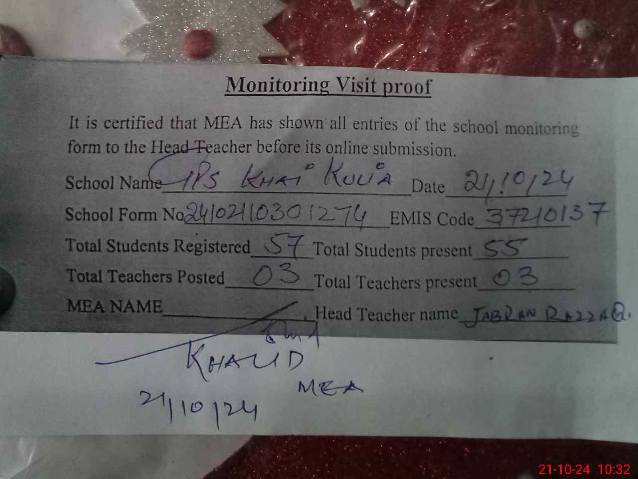 | EMIS Code: 37210137 | Name of School: GPS KHAI KULIA | |||