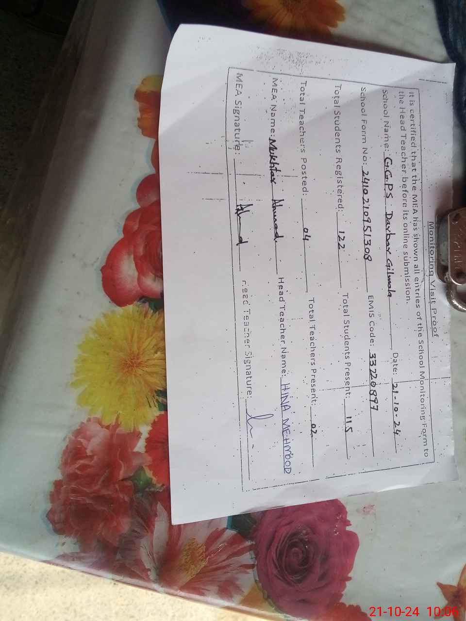 | EMIS Code: 33220897 | Name of School: GGPS DARBAR GILMALA | |||