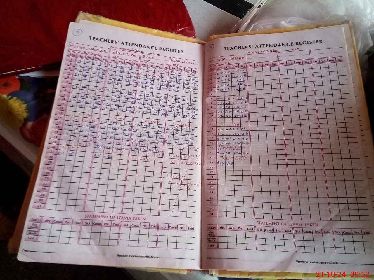 | 33**** | Qu**** UlAi**** Al**** | 1 | 2 | 0 | 0 | 0 | 0 | 0 | 0 | 0 | 2 | Absent (Un-Authorized) | |