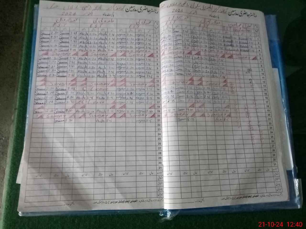 | CNIC | Full Name | Designation | R/C | Absence During Last Calender Month |