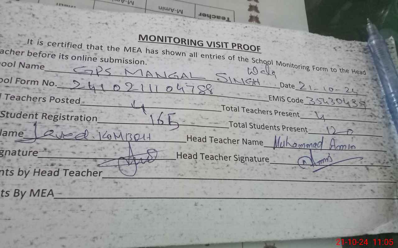 | EMIS Code: 35430489 | Name of School: GPS MANGAL SINGH WALA | |||