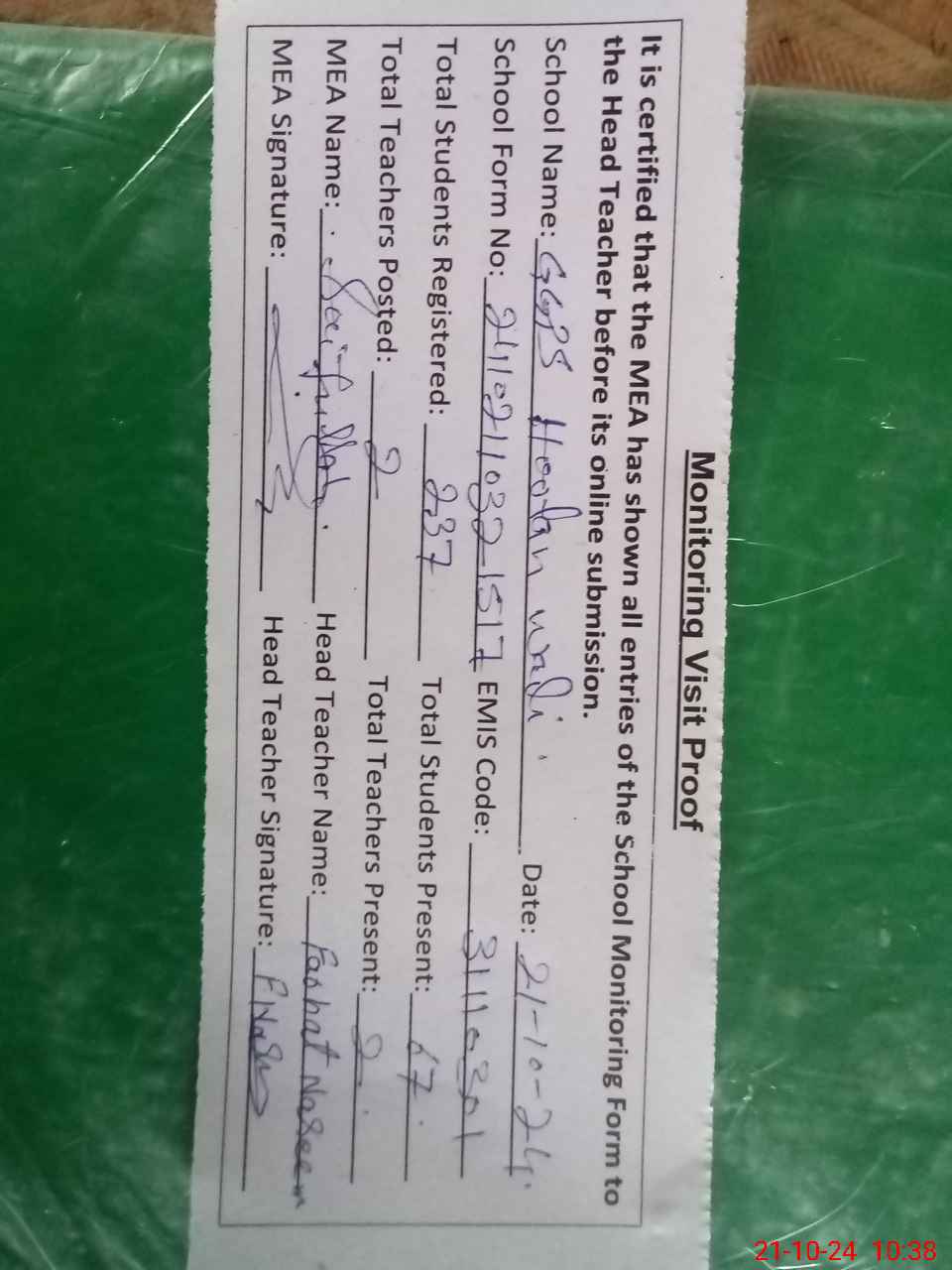 | EMIS Code: 31110301 | Name of School: GGPS HOOLAN WALI | |||