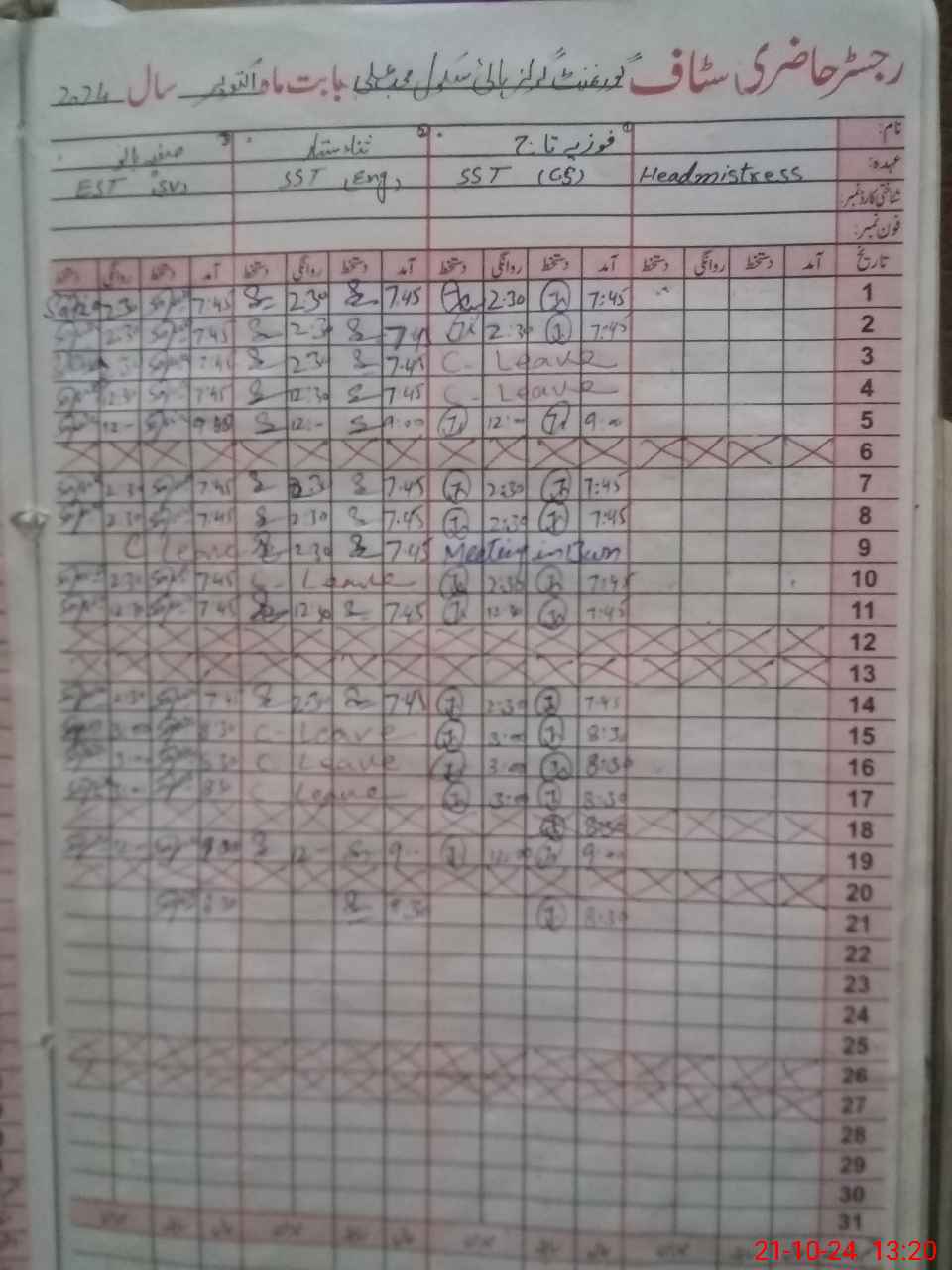 | CNIC | Full Name | Designation | R/C | Absence During Last Calender Month |