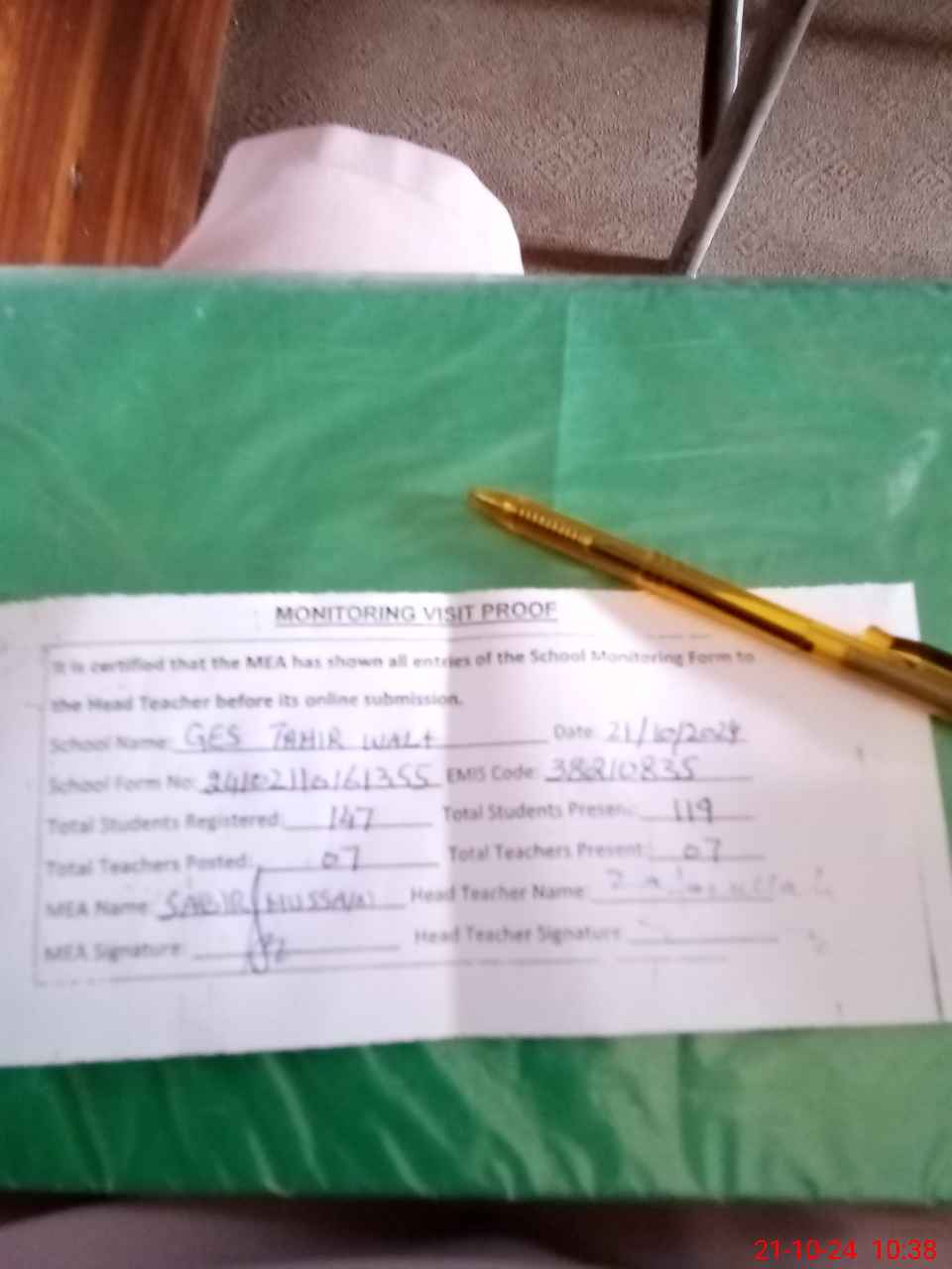 | EMIS Code: 38210835 | Name of School: GES TAHIR WALA | |||