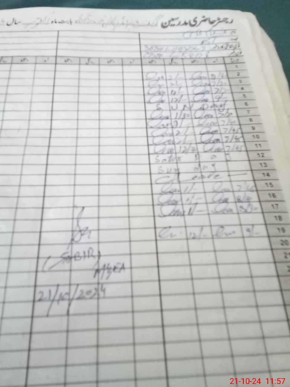 | CNIC | Full Name | Designation | R/C | Absence During Last Calender Month |