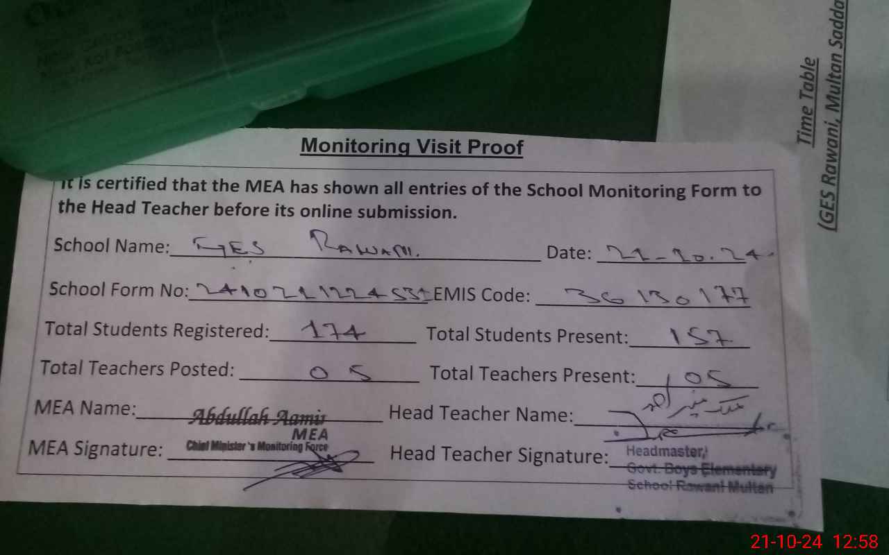 | Certified that this School was Inspected by the Undersigned MEA/DMO Today and the Information Stated Above is as Per Record. | |||||